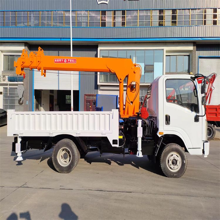 迁安市重汽豪曼小型四吨直臂蓝牌随车吊厂家 起重机价格
